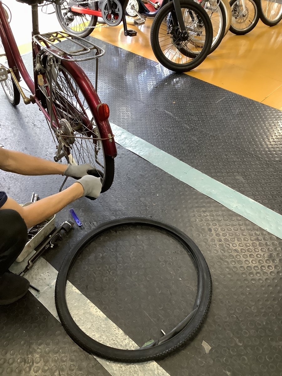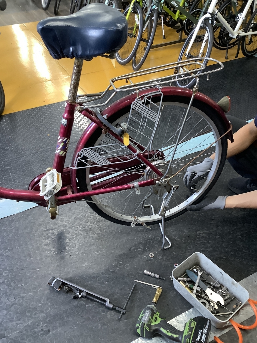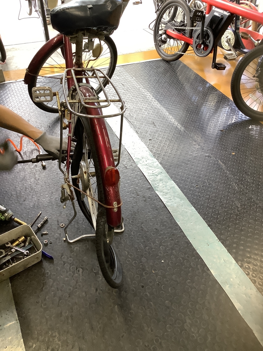 代表が「もし時間があるのなら。この自転車、後輪がおかしいから。見て貰って。線路沿いに自転車の修理屋さんがあるから」って。