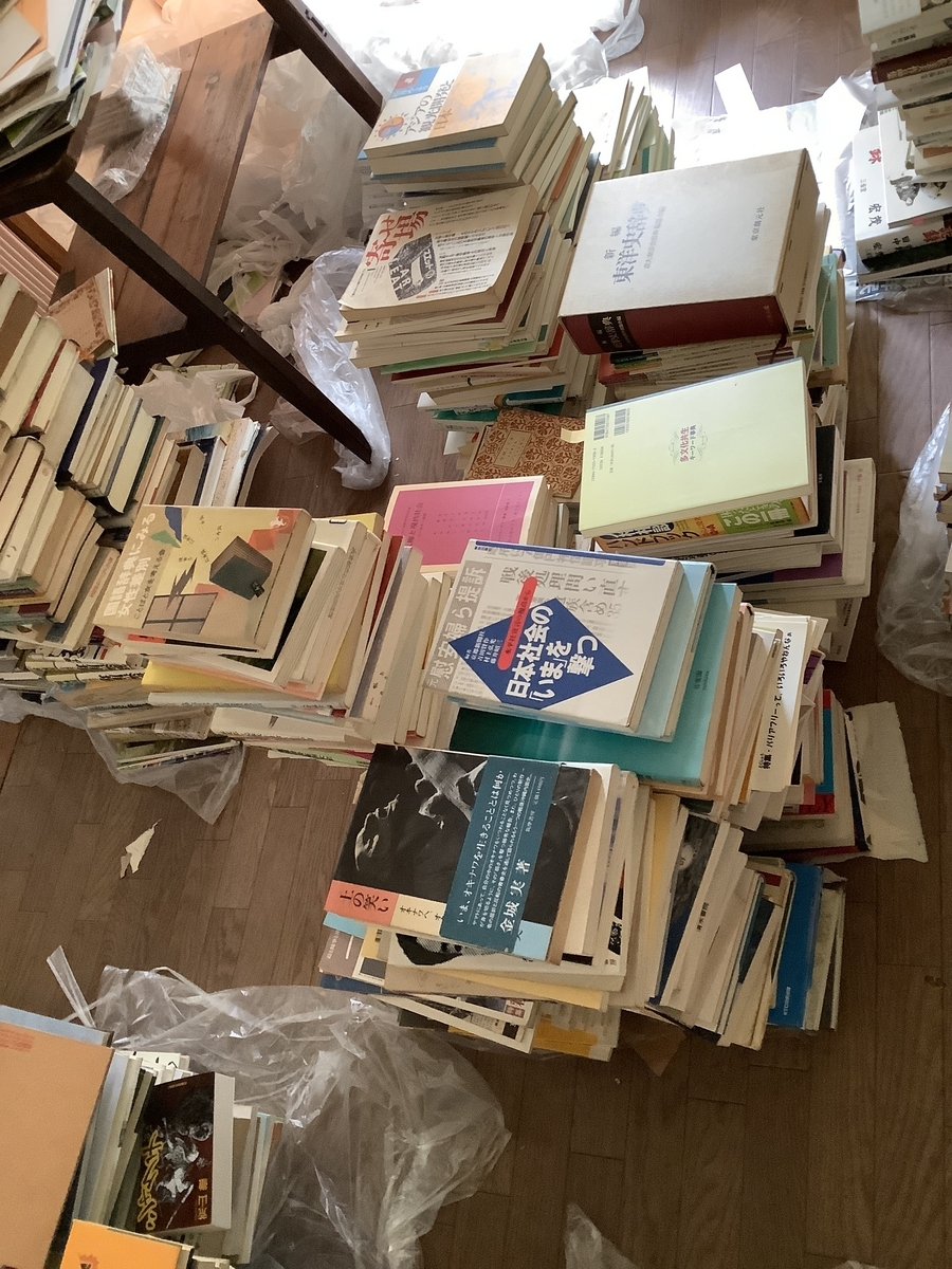 私は「昨日、マンションでKさんから、もしできるのなら続きをしてほしいって。蔵書の山から戦争物だけを選り分ける作業だけでいいからって」「朝鮮のB級は既にもう選り分けて、Kさんが残り全部をレジ袋につめて置いてあるから。残りの山の分類と梱包作業が残っています」